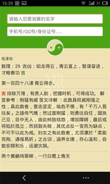 付款后有分析方法介绍。点中间太极图开始测试。里面有繁体简体巧连神数,和繁体简体合,三才五格。号码三项同时吉最好。