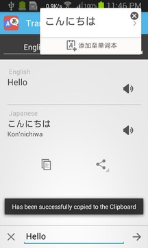 翻译家,免费为你的Andr??oid提供*强大的翻译工具。翻译任何语言,任何句子或者短语,并享受了一套有用的附加功能,如文本到语音,并整合Twitter/Facebook/短信/电子邮件支持。这是*强大的,直观的翻译应用程序,是你一直想要的:- 翻译任何句子或者短语,任你您选择超过50种语言- 文本到语音功能(地道的发音)主要功能包括:★即时,易于翻译★★50种语言★★文本到语音★★历史记录★★集成社交元素★- 集成了复制粘贴功能大多数的常规功能支持以下语言:中国(简体),中国(繁体),克罗地亚语,捷克语,丹麦语,荷兰语,英语,爱沙尼亚语,芬兰语,法语,加利西亚语,德语,希腊语,海地克里奥尔语,希伯来语,印地文,匈牙利语,冰岛语,印度尼西亚语,爱尔兰语,意大利语,日语,韩语,拉脱维亚语,立陶宛语,马其顿语,马来语,马耳他语,挪威语,波斯语,波兰语,葡萄牙语,罗马尼亚语,俄语,塞尔维亚语,斯洛伐克语,斯洛文尼亚语,西班牙语瑞典语,泰语等等。