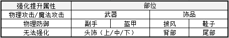 波利的复仇游戏中并不是所有种类的装备可强化,目前可强化的有武器和防具类两大分类,饰品中的头饰(上/中/下)、背部和尾部这些部位是无法强化的;且强化属性只增加对应装备的基础属性: