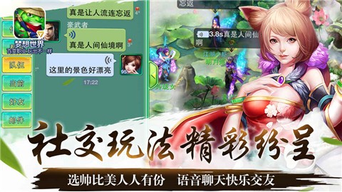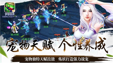 趣味策略回合制手游大作!百变职业,玩出不一样!快意恩仇自由PK,奇招异式耍威风;花样宠物个性养成,携华美坐骑翅膀问鼎江湖;绿色环境,轻松任务;高颜值选秀,快乐社交,梦想世界邀你踏上全新征程!