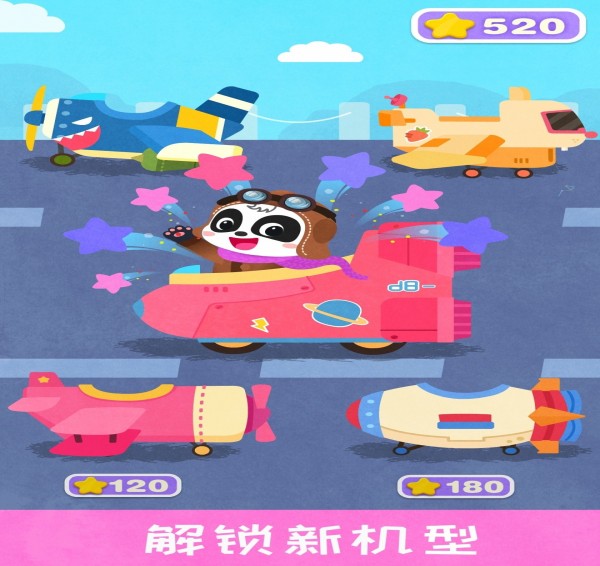 鲨鱼飞机,香蕉飞机,火箭飞机……6大酷炫机型自由选择,还有更多机型持续更新,宝宝快来挑一架最喜欢的飞机射击冒险吧!(让儿童体验角色扮演。)