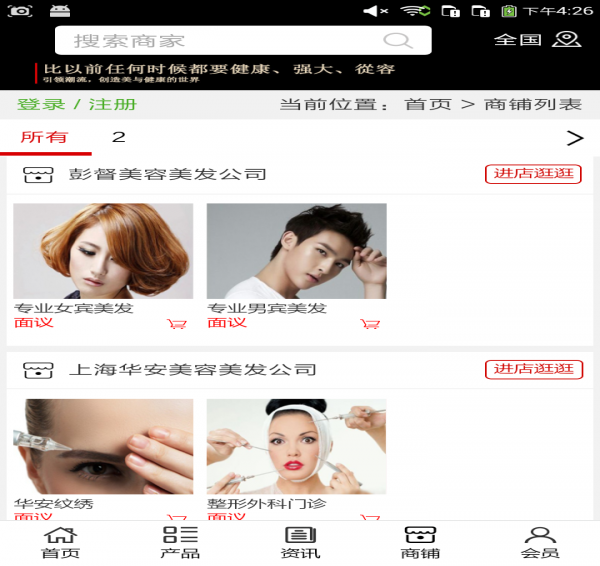 河北美容美发行业App不仅具备购物、查询订单、搜索商品、行业资讯和产品评价等常用功能,而且还实现了手机版特有的会员注册登录、广告位、招商开店等功能。目标是整合当地品牌商、生产商、经销商,为商家和消费者之间提供一站式解决案。