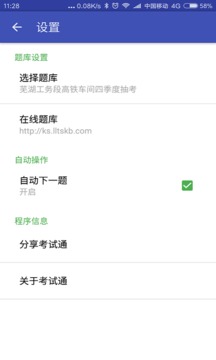 考试通是我们针对android系统手机新开发的一款手机用模拟考试的软件,自己可以增加题库,完全免费、更新及时、操作简单等特色,是考试练习的必备软件。如有需要制作的自己题库,可以将考试题发到yjg72889@163.com邮箱(excel文件格式),我们帮忙制作,也可以自己制作。