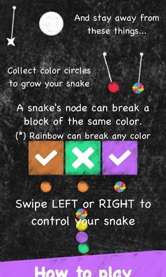《蜡笔贪吃蛇 Snake Crayon Run》是一款手绘风格的益智游戏,通过收集不同颜色的小球来增加自己的长度,尽可能地突破障碍来刷新最高纪录。注意,只有与方块颜色相同的蛇头才可以将其击碎,否则你可能出现更大的损失。