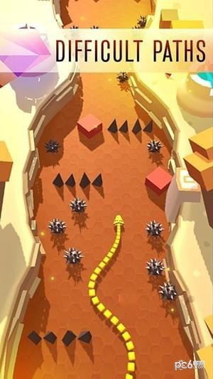 2、操作很简单,就是按住屏幕左右滑动,帮助小蛇进行躲避即可,但是有很多陷阱是突然出现或者突然移动的,要小心一点;