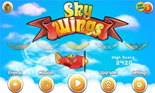 《天空的翅膀 Sky Wings》是一款在天空中飞翔的跑酷类游戏,游戏中飞和躲避危险的丛林地形。 避免树木、岩石、桥梁、飞机!收集徽章,收集金币,升级技能以及飞机的各个部位,让你飞得更快,飞得更稳,飞得更久。