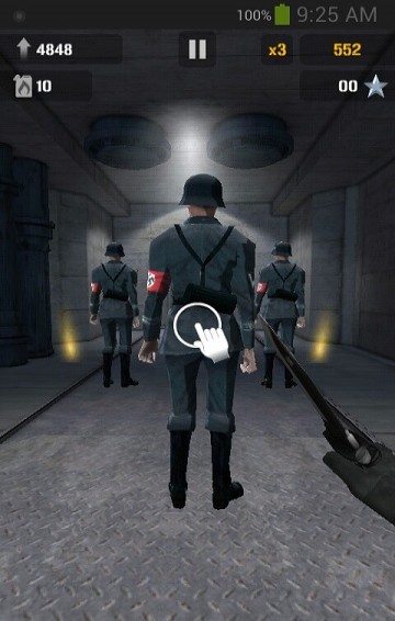 游戏采用第一人称视角跑酷的方式呈现,你需要一边跑酷一边将前面守卫的法西斯分子杀死。