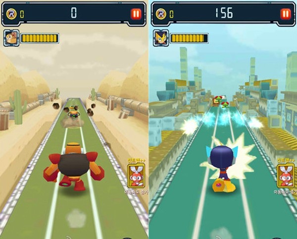 《洛克人 GoGo Rockman GoGo》是一款卡普空授权给Daegu Mobile Game制作的跑酷类游戏。洛克人 GoGo有点像《神庙逃亡》,玩家要视情况转换跑道,或是以跳跃、 发射弹药的方式闯过前方的敌人及障碍物。