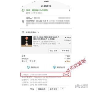 淘宝购物成功后,打开淘宝已购商品详情页,复制淘宝订单号