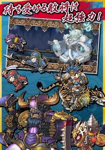 游戏中将收录包括赵云、关羽与张飞等三国名将让玩家们使用,玩家们可以透过左手来操纵武将跳跃钮,并藉由右手控制攻击、技能与防御技三个按钮,虽然操作简单,不过搭配起来,却能组成华丽的连续攻击动作,让玩家们尽情享受在战场上爽快杀敌的刺激动作乐趣!