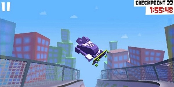 在游戏中玩家将化身为一名嘻哈打扮的年轻人,乘着滑板在公路上进行冒险。从城市的街道一直延伸到广阔的郊外都将成为你的舞台,相信本作那种清新风格的色彩表现会让你充满好感哦。随着完成游戏内的诸多挑战,你还有机会解锁不同的角色以供使用。数十种不同风格的场景与关卡正等待你前去参与。