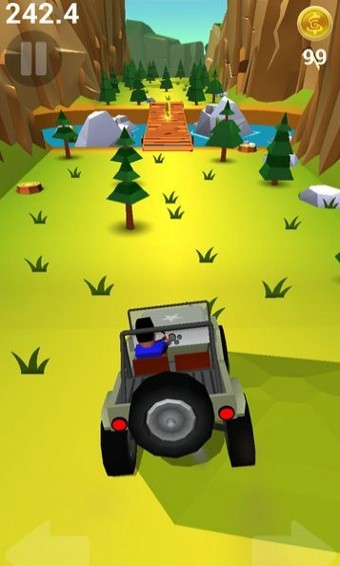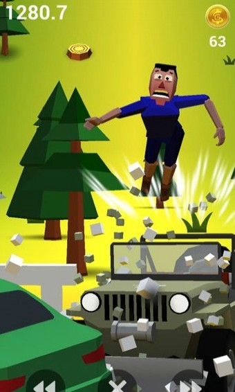 与其他跑酷游戏不同的是,在该作中玩家并不是控制人物进行跑动,而是控制一台失控的轿车,利用左右移动的方式,躲避一路上的树木、汽车以及火车等障碍。但万变不离其宗,依旧是躲闪障碍捡拾、道具等操作,另外游戏还设有收集系统,玩家可以使用获得的金币来购买外形更炫的汽车。