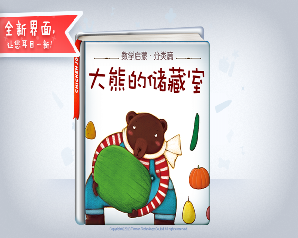 为了度过冬天,大熊买了好多食物,多到储藏室都装不下了,该怎么办呢?通过按物体颜色、形状、大小等特征来分类,宝宝可以奠定数学思考能力的基础。