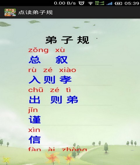 点读弟子规app是一款育儿早教类的软件,点读弟子规app将《弟子规》的内容都加入进来了,同时以游戏以及有趣的方式让孩子可以更好的接受里面的内容。