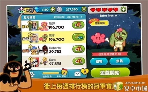 可爱,娱乐性更超群的跑酷游戏! 快从烤箱中拯救可爱的饼干们吧!可怕的魔女想把饼干全部吃光! 快趁饼干被放进烤箱烤之前,帮忙它们逃脱吧!【注意】需要LINE账号才能进入游戏