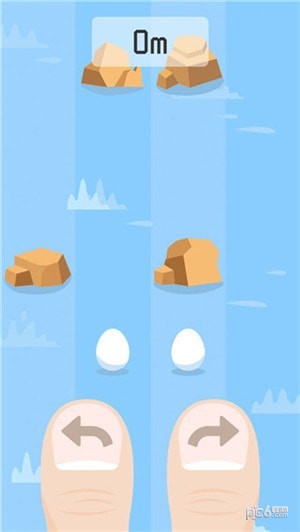 用双手大拇指按住屏幕下方的两个手指移动鸡蛋,以躲避石头,通过松开和按住手指来控制蛋蛋。