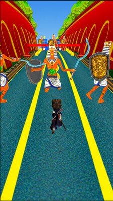 忍者地铁酷跑是一个有趣的跑步游戏。有很多挑战和良好的3D环境。在这个游戏中忍者继续他的任务,他被他的敌人的狗发现。狗追逐他,他跑....让咕…要玩这个游戏,你需要跑一趟。有时你可以在地上冲浪,跳跃和杂技和更多的行动。避开卡车和一些障碍,你会成功的。这个游戏将检查你的敏捷度。尽可能快地冲上屏幕,否则你会失败的。