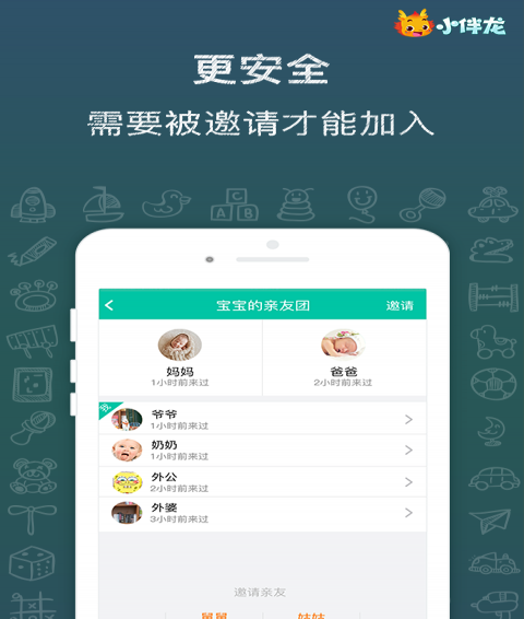 【安全私密 专属空间】宝宝专属空间,被邀请的人才能加入,保护宝宝信息安全。