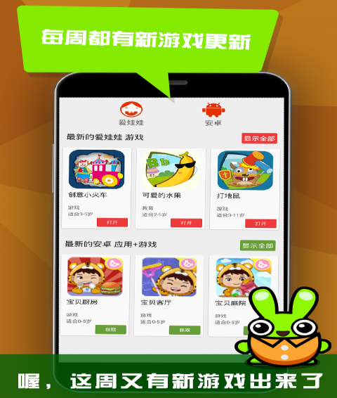 爱娃娃游戏是专为家长和儿童游戏学习打造的应用,能随时查看海量儿童游戏,支持分年龄段查看游戏详情,拥有适合儿童的大图标设计,是您儿童游戏的好帮手。