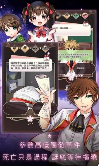 在《》中,玩家将面对樱华学园中的各种互动,并根据互动选项影响各项数值的升降。这些数值则会影响后续事件的互动及选项,甚至…影响着你的死亡。