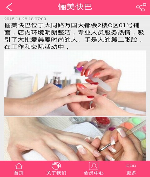 海南美容美发是一个以美容美发产品为核心的APP客户端。包括美容美发产品的美发公司推荐、产品供应、中医养生、美容会所、彩妆美甲、美妆用品、行业资讯等,以及会员中心、招商加盟等。 美容美发,通过保养,化妆,装饰等手段使容貌,头发变得美丽的一种技术。在当今社会颇为流行。保养,化妆,装饰等手段的技术美容是让容貌变美丽的一种艺术。