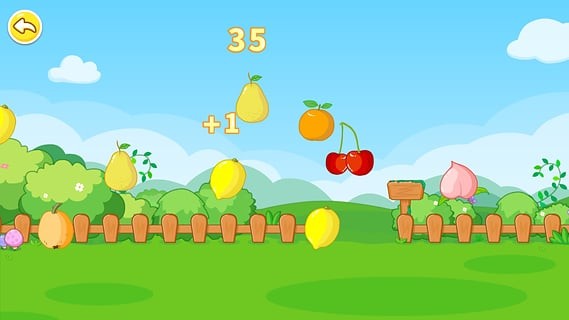 场景三:好多水果宝宝漫天飞舞,赶紧把它们击落吧,还能得分哦!