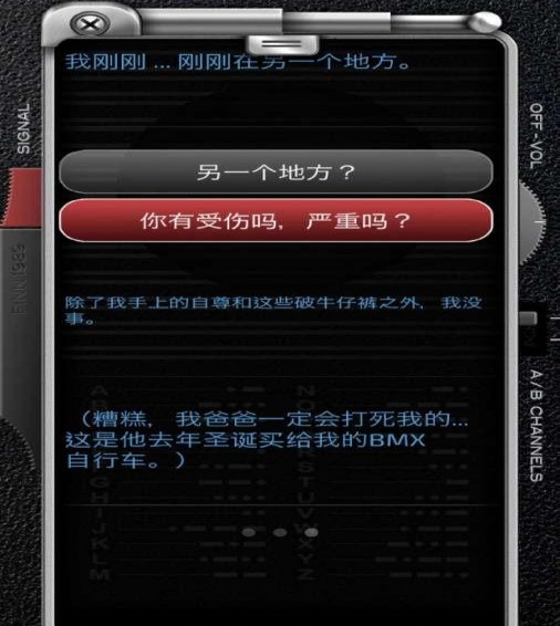 就像受欢迎的Lifeline(生命线)游戏一样,这是一个实时的情节分支故事类游戏。费恩小朋友努力活下来,一路和你保持联系,让你全天候都会收到新的信息。你可以立即查看它们,或在空闲的时候再看看它们,给费恩回覆。,在对讲机的另一方等候着你。感谢你的陪伴。