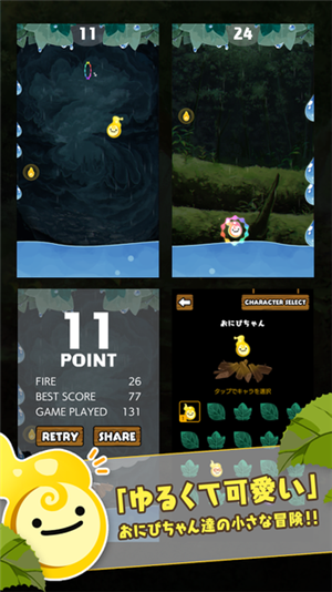 《》(ONIBIちゃん ひとり)是游戏商PONOS旗下的一款休闲敏捷类游戏。游戏中玩家将扮演一个小火苗,进行一场华丽的冒险,记得让自己的火苗越来越大,可千万别让水滴滴到哦!