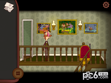 点击栏杆上的抹布收到口袋里接着点击座椅下楼。(这种下楼方式很高级啊~应该是现在电梯的前身吧~~)