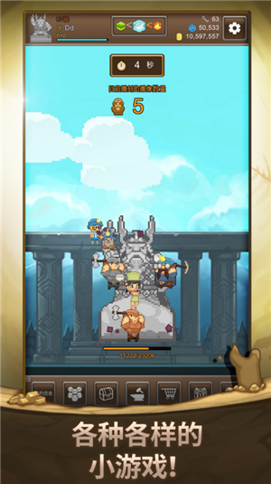 是一款经典的黄金矿工冒险玩法手游,轻松的点击玩法,玩家需要挖取地下矿石来培养自己的角色,和各种boss对抗,更有丰富的小游戏等你来探索。