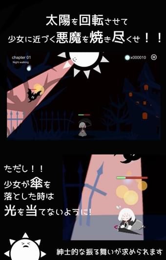 切换太阳的旋转方向来烧毁接近女孩的敌人(恶魔等)