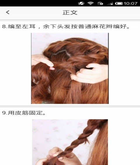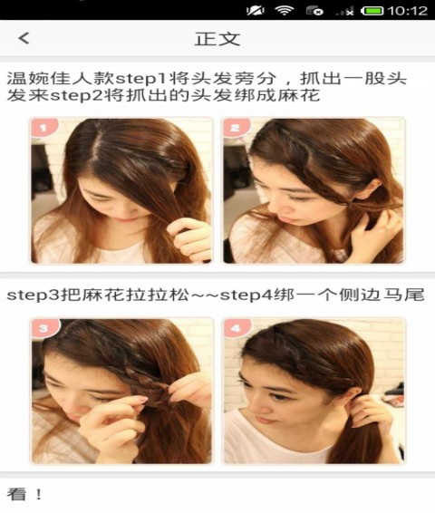 1、扎发技巧模块详细介绍扎头发的方法,每个步骤都有文字和图片详细的描述