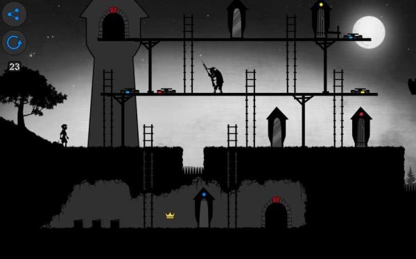 是一款黑暗风格的动作类解密冒险游戏,游戏采用闯关的玩法,玩家需要控制角色,玩家要想尽办法避开守卫的视线,成功走到国王断头台前拯救成功,并获得最终胜利。