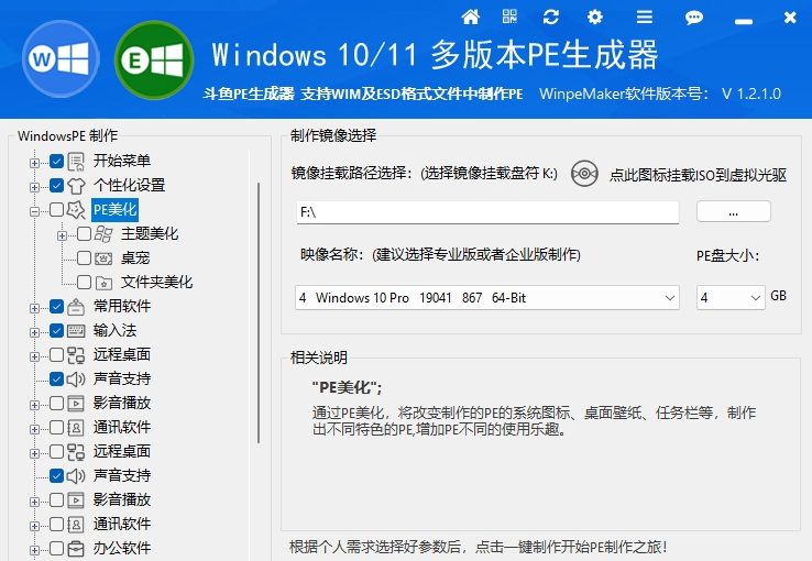 个性化定制:允许用户自定义PE文件的图标、启动菜单、桌面壁纸等元素,使生成的PE文件更符合用户的品牌形象和个性化需求
