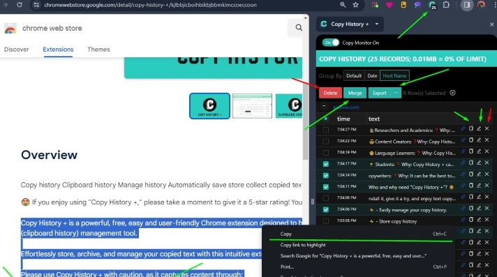 复制历史 +(浏览器剪贴板管理插件)能够有效地管理和跟踪用户在浏览器中的复制操作历史,帮助用户保存他们在浏览网页时复制的文本内容,使得用户可以随时随地轻松地访问这些信息。用户只需在浏览网页时复制他们想要保存的内容,然后通过点击插件图标就可以查看和管理他们的复制历史。同时支持自定义设置,如设置保存的历史数量、是否自动清理过期的历史等。