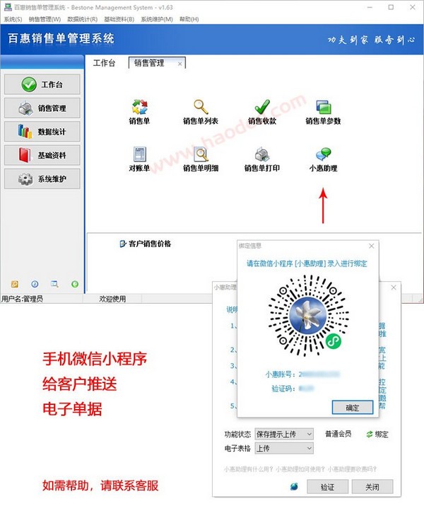 3、优化“小惠助理”微信小程序功能,可以在微信查看和推送电子单据
