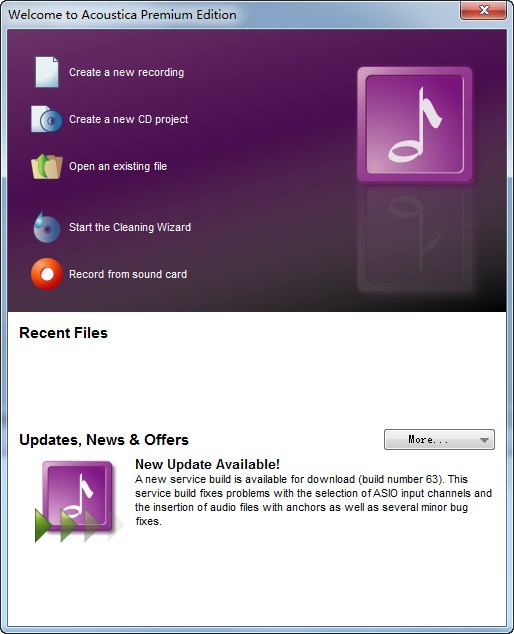 Acoustica 是一个强大的声音编辑程序,它拥有对声音进行动态处理,实时降噪,格式转换,时标调整,均衡,加入合唱效果、混响效果等等一些功能。用它配合其他工具软件可以做出很不错的卡拉ok,对于效果不好声音或卡拉OK进行处理后,可以达到很专业的水平。