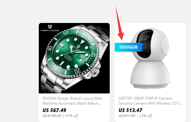 插件安装完成后,打开速卖通的产品页,鼠标移动到对应的商品上方,就会出现一个采集按钮【添加到品集】,点击它即可采集商品了。