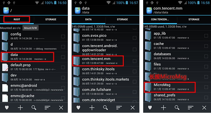 手动使用“RE管理器(RootExplorer)”提取微信聊天数据需Root