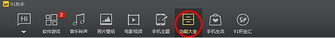 1.下载 91助手,在91助手中打开“功能大全”的选项卡。