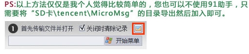 4.正常读取数据后,单击“开始菜单”上方的图片按钮,选择第3步中导出的“MicroMsg”资源文件夹(注意不要选错),等待完成即可(也可以直接将数目录“MicroMsg”文件夹和资源目录“MicroMsg”文件夹合并)