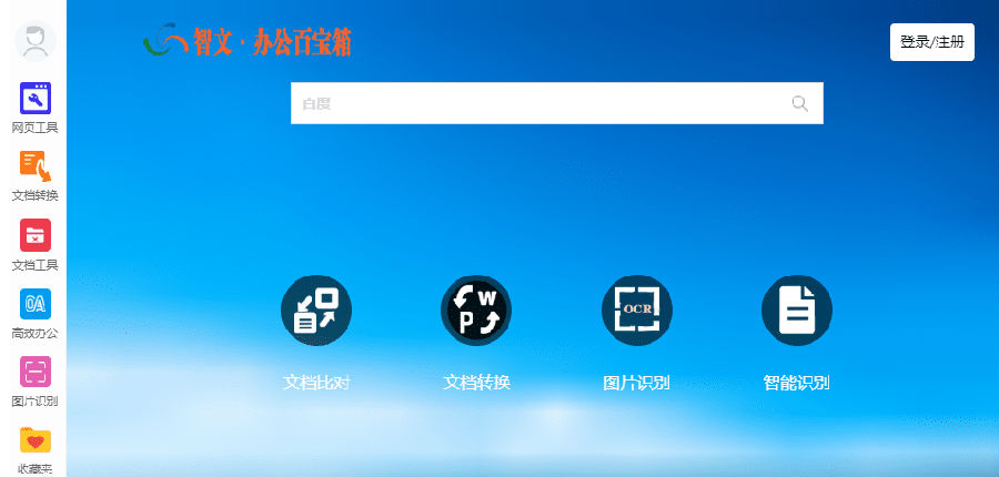 智文办公百宝箱拥有非常简洁明了的界面,保证办公人士能够即开即用,提高办事效率。本软件提供网页工具、文档转换、文档工具、图片识别和高效办公等栏目,丰富的实用工具绝对可以让您的工作更得心应手。