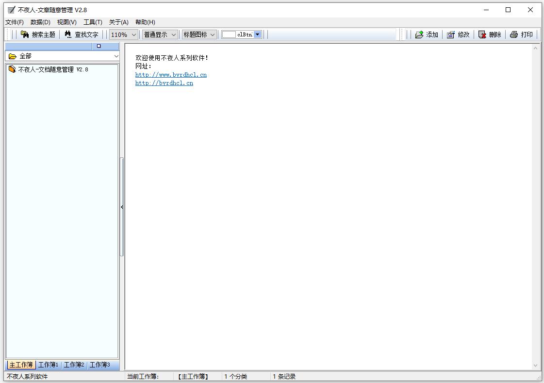 支持多工作簿模式,目前这个版本共可以支持 4个工作簿,工作簿之间相对独立,任意存取,同时不同工作簿之间数据又可以互相转移。格式化存取功能,能够很好的保持文章的原有风格、照片,方便阅读和打印。书签功能可以很好的记录你上次使用足迹,每个文档理论上可以添加任意多个不同格式的附件,对于小的附件储存在数据库中,大体积的文件则直接存储在安装 目录的不同分类目录下。文章打印功能实现了所见即所得。