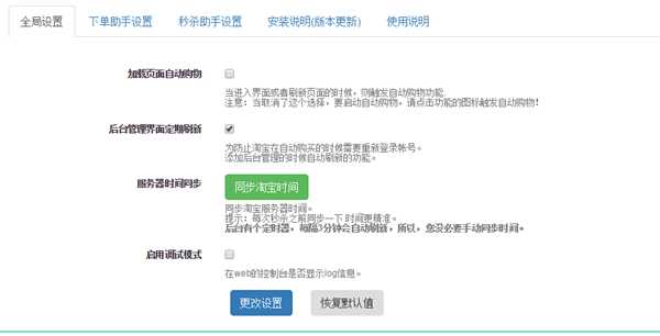 支持淘宝和天猫页面自动购物。启动功能,系统可以实现自动下订单,自动确认订单并自动跳至付款界面。如果您需要,甚至可以实现自动付款!