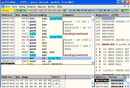 ollydbg可以根据 Borland 和 Microsoft 格式的调试信息,显示输入/输出符号及名称。Object 扫描器可以识别库函数。其中的名称和注释您可任意添加。如果DLL中的某些函数是通过索引号输出的,则您可通过挂接输入库[import library]来恢复原来的函数名称。不仅如此,OllyDbg还能识别大量的常量符号名(如:窗口消息、错误代码、位域[bit fields]…)并能够解码为已知的函数调用。