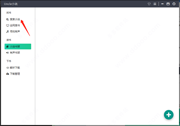 2、双击“Uncle小说.exe”无需安装即可直接运行使用,进入后直接是显示到“小说书架”的界面,当你需要搜书的时候可点击“搜索小说”;