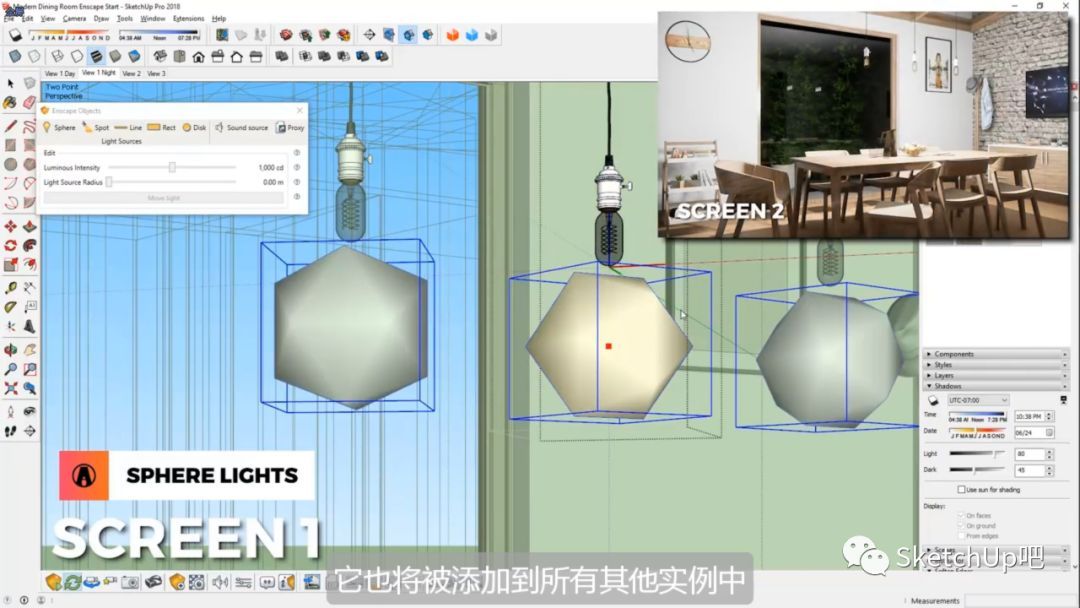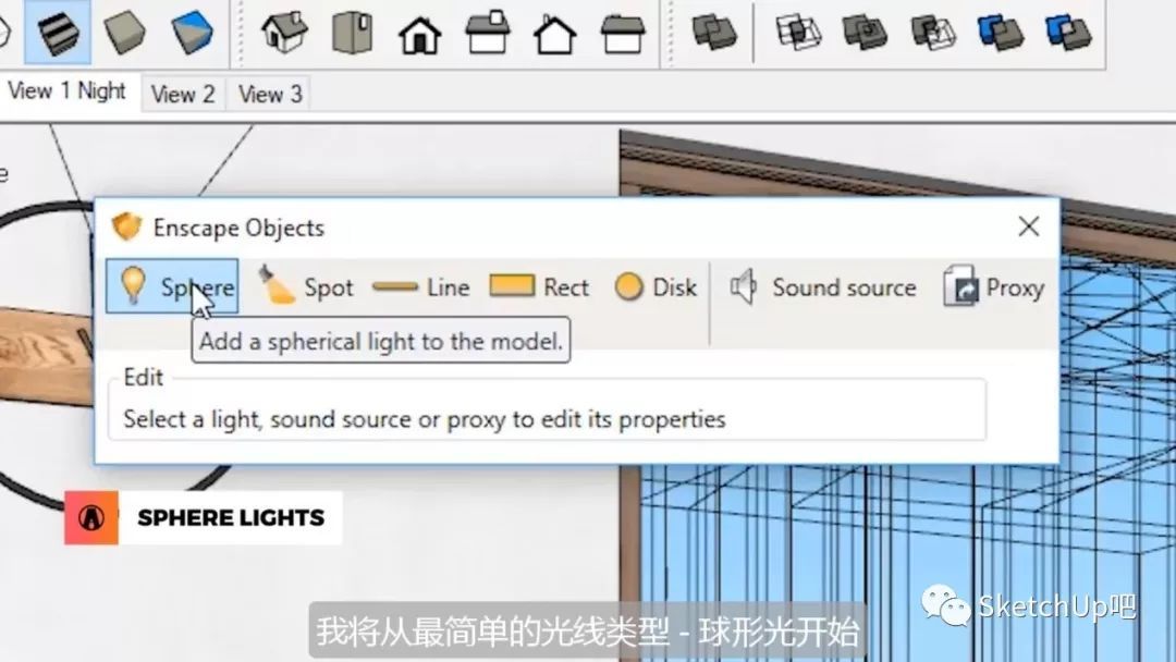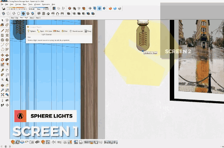 点击创建一个Sphere Light,Enscape的双击系统有助于您轻松地放置光线。首先点击起点参考点从那里您可以移动到另一个位置然后再次单击以完成灯光的创建。
