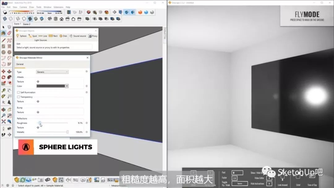 球体灯也可以选择调整光源半径(以米为单位控制光源的大小),这只能在镜子等反射中看到。反射光的外观取决于该材料的粗糙度,粗糙度越高面积越大这使它更模糊更不明显。