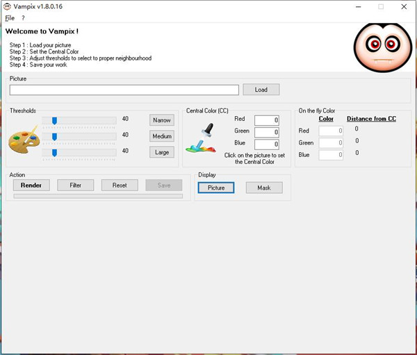 1、Vampix绿色版的使用非常简单,双击Vampix.exe即可运行程序,打开操作界面后点击load添加要处理的照片或图片