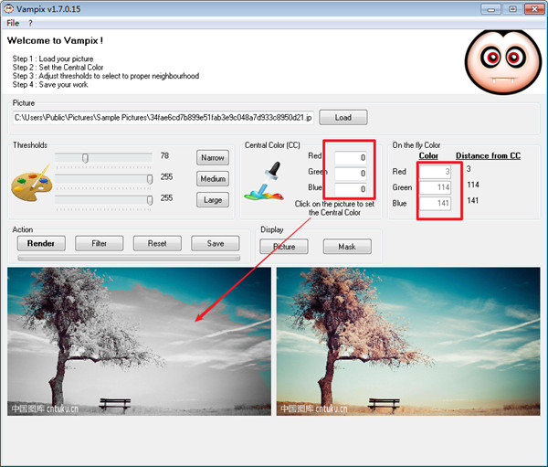 1、Vampix绿色版是一个小应用程序,它可以让你调整照片中的颜色级别或黑白滤镜,该工具只支持JPG格式
